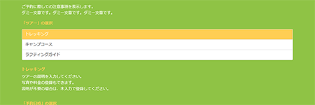 ガイドメニューごとに予約カレンダーを用意したタイプの予約フォームです。各ガイドメニューごとに紹介文・画像を掲載出来ます。