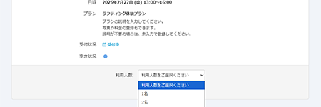 • SelectTypeなら、プランごとに座席数・定員を自由に設定可能。満席時には自動で受付停止され、オーバーブッキングを防ぎます。